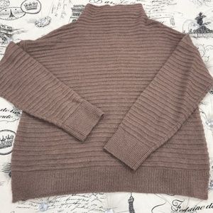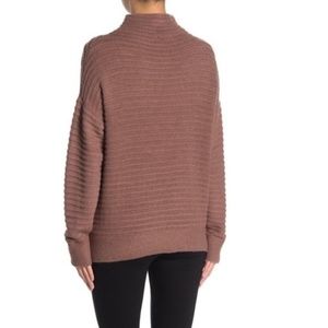 A super-soft pullover sweater features a mock neck, ribbed knit design, and relaxed fit for cozy style.