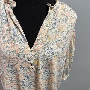 Embrace elegance with this floral print women's top. Featuring a blend of soft colors, this top is perfect for any occasion.