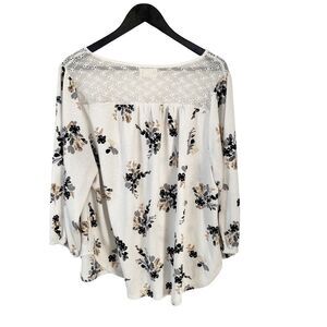 Melloday, white, floral pattern, eyelet, boho, peasant, long sleeve, split V-neck, blouse, feminine, casual, breezy, lightweight, airy, romantic, trendy, relaxed fit, comfortable, chic, summer, spring, effortless, stylish, vintage-inspired, versatile, layered look, Real Women, Plus size, hippy