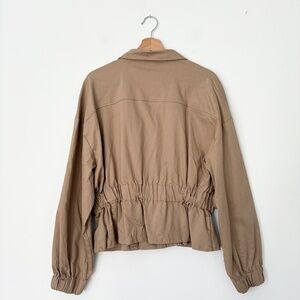 Light denim jacket featuring elastic waist and bubble sleeves