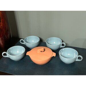 Melmac Melamine Cups and Sugar Bowl Lot Blue & Peach