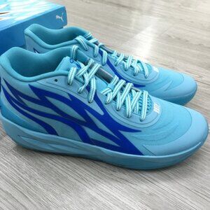 These are kid shoes. Worn- a few side scuffs I cannot remove.