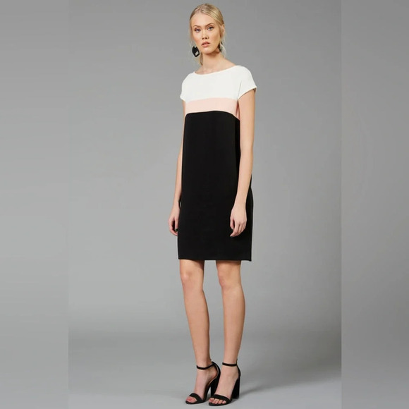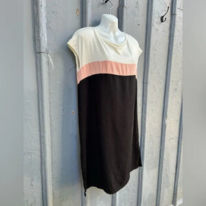 Colour block shift dress from Montreal designer. Beautiful soft textile. Easy shift design. Would look great with tights and boots and equally as well with sandals.