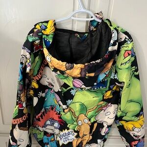 Colorful jacket with bold cartoon character design. Eye-catching and fun style.