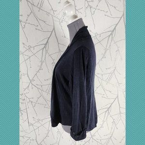 Memo Navy 100% Linen Knit Open Cardigan w/ Silk trim