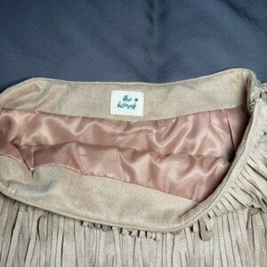 Blue Buttercup - Suede Fringe Skirt in Taupe size small