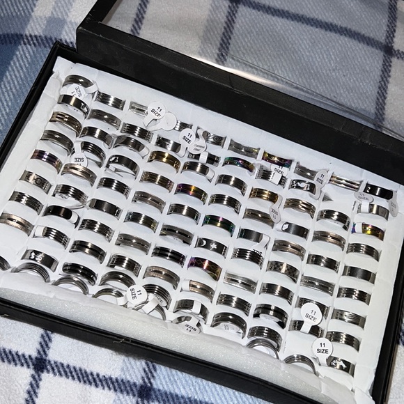 Stainless steel rings and colourful stainless steel ones are included too