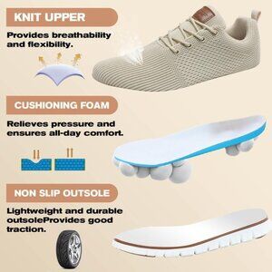 🆕Men Beige Running Walking Shoes, Lightweight Casual, EVA Outsole, Breathable