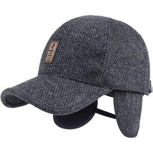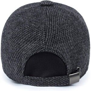 🆕 Men Black Baseball Cap Winter Warm Wool Tweed Peaked Fold Earmuff Jacket Hat