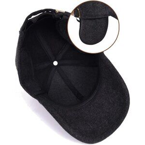 🆕 Men Black Baseball Cap Winter Warm Wool Tweed Peaked Fold Earmuff Jacket Hat