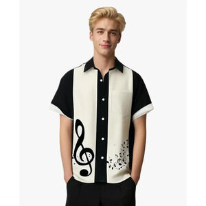 【Material】Mens Hawaiian bowling Music Note shirts are made of skin-friendly and lightweight fabric, soft, quick-dry, comfortable and breathable to wear.