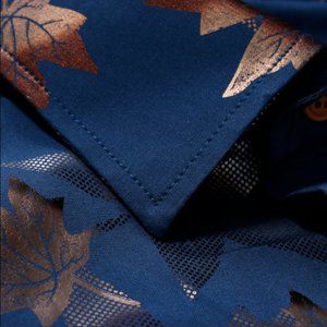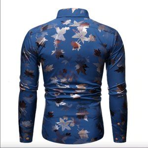Men Blue Long Sleeve Silk Floral Autumn Printed Shirt Size L