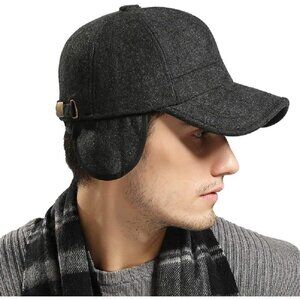🆕 Men Brown Baseball Cap Winter Warm Wool Tweed Peaked Fold Earmuff Jacket Hat