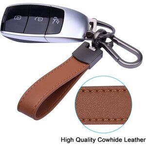 🆕 Men Brown Genuine Leather Car Keychain Universal Fob Holder Anti-Lost D-Ring