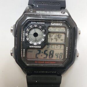 Men Casio Watch 3299 Ae-1200wh Digital 48 Cities World Time 5 Alarm Black Band