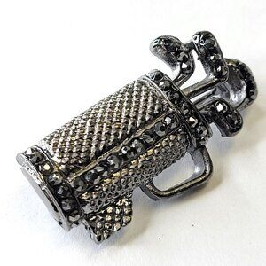 Golf Club Bag Golfer Brooch Pin black Rhinestone Sports Jewelry
