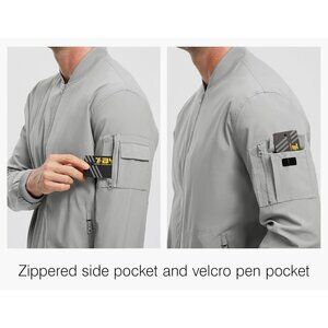 Five Functional Pockets: 2 front zippered pockets, 1 zippered arm pocket, 1 pencil pocket on the left sleeve and 1 inner pocket for wallet,card etc.