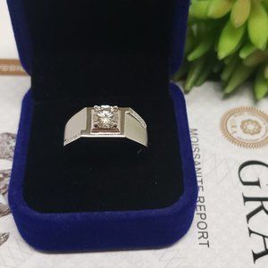 1 Carat Moissanite Men Engagement Ring 925 Sterling Silver Wedding Band