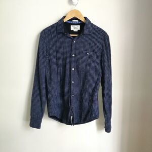 Men PENGUIN Check Gingham Blue Lined Preppy Heritage Slim Fit Shirt Size Medium