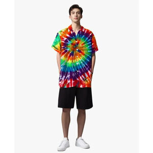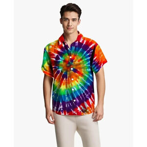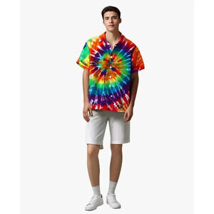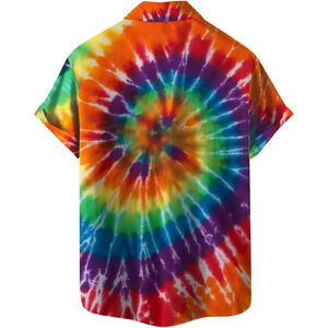 ❤️Men Rainbow Print Short Sleeve Hawaiian Fit Casual Button Down Beach Shirts