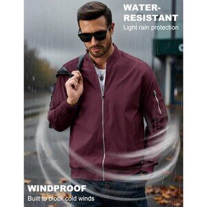🆕 Men Red Bomber Jacket Lightweight Casual Windbreaker Full Zip Spring Coat