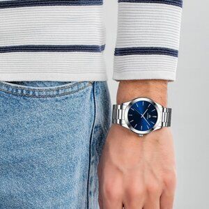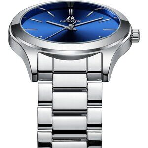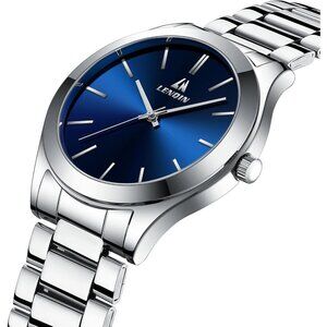 Men Silver Blue Stainless Steel Analog Quartz Fashion Business Designer Watches