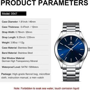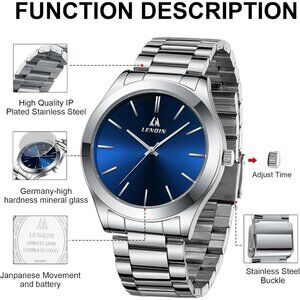 ⌚【MEN STAINLESS STEEL WATCH】Elegant mens wrist watches comes with a soft and comfortable stainless steel case and strap, suitable for daily wear, non-oxidizing, easy to maintain. Foldover clasp with push button prevents accidental opening and falling, come with tool for adjustment different wrist sizes.