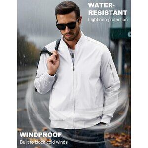 🆕 Men White Bomber Jacket Lightweight Casual Windbreaker Full Zip Spring Coat