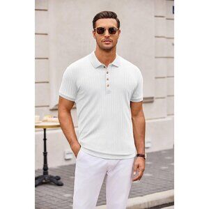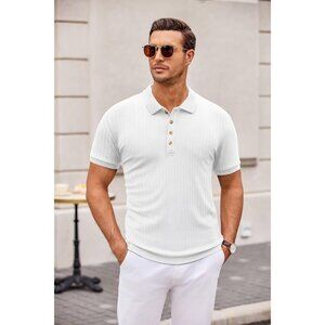 🆕Men White Polyester Polo Shirt Slim Fit Casual Summer Short Sleeve Workout