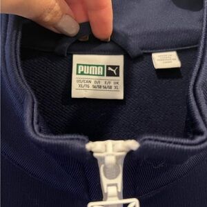 Men XL Puma Long Sleeve Zip Up Navy Blue and White