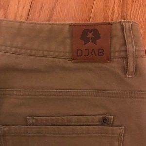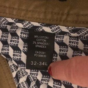 Fabric: 998% cotton 2% spandex. Slightly worn.