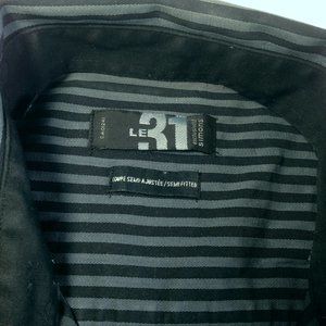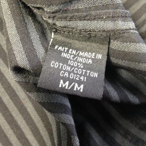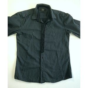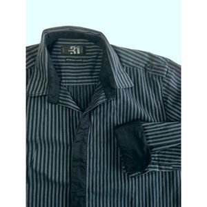 Men vtg New Wave Black & Gray Stripes Shirt Flip Cuffs Epaulettes MEDIUM -fitted