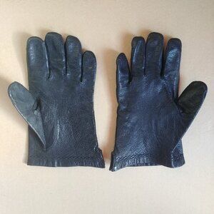 Very good used condition. These gloves are marked as a 10 1/2. No brand or materials tag attached, but these definitely look and feel like real leather. Please see photos for measurements.