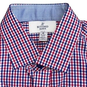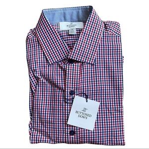 Men's 15.5 Buttoned Down Slim Fit Blue Red Tattersall Check Casual Dress…