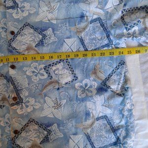 TAG X BRAG mens 2XL fishing hawaiian camp shirt made in u.s.a. fair condiyion has a small tear see last two pictures