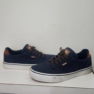 Navy blue canvas and brown leather Vans skate shoes/boat shoes