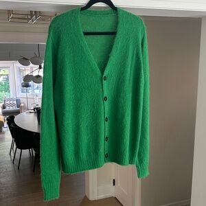 Independent brand AFROMATCHA Kelly Green Kurt Cobain-type Mohair Blend Sweater - Size Men's L. Rarely worn, excellent condition, no pilling per photos. My son found this tiny independent unisex brand and asked for this sweater for Xmas 2022. No interior tags as designer did not include them as part of the indie charm 🤷🏻♀️.