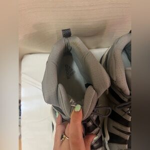Adidas sneakers featuring a sleek gray and black design. Ideal for everyday style. Size 14 men’s, in good shape as pictured.