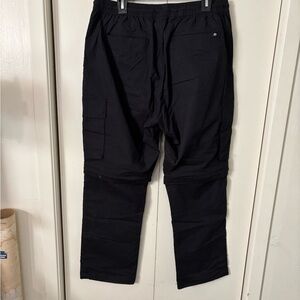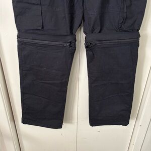 These Aeropostale cargo pants feature a solid black color and a relaxed fit, perfect for casual wear. The straight leg design and elastic waistband ensure comfort and with the removable leg portion to change them into shorts they are perfect for any occasion ☕️ in great shape😎