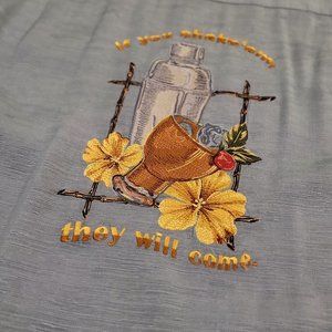 Short Sleeve - Never worn, button shirt with a cocktail message on the back, and small jigger on the front pocket. Perfect condition.All Silk material.