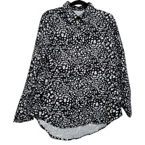 This men's unbranded button-down shirt features a striking animal print on a black background, crafted from 100% polyester, providing a stylish yet comfortable fit.