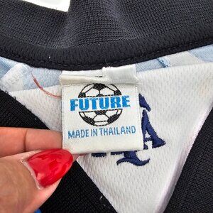 Show your support for Argentina with this Men's Argentina Jersey in size M-L. Perfect for soccer enthusiasts, this white jersey features the iconic Argentina team colours and logo. Made for comfort and style, this football jersey is a must-have for any fan. Imported from Thailand, this high-quality product is ideal for showing off your team pride during game days or casual wear. Upgrade your fan apparel collection with this authentic Argentina jersey.