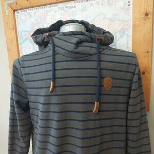Men's BELOWZERO Switzerland Hooded Striped Sweatshirt Leather Accents Size XL
