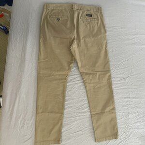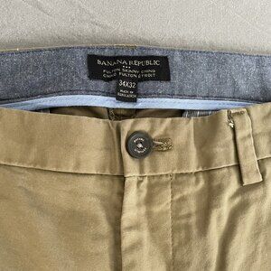 Banana Republic Made with added stretch for comfort. Front slant pockets. Rear buttoned welt pockets. Zip fly with button closure. Belt loops. Sits low on waist. Slim through thigh, knee, and leg opening