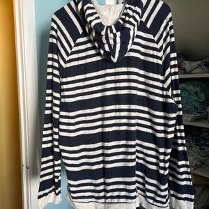 , effortless and casual, a comfy, striped hooded tee. Made from 100% cotton.. Feature a lined hood with drawstring, long sleeves, white cuff on sleeve and bottom of shirt. In excellent used condition.. Size extra extra large.