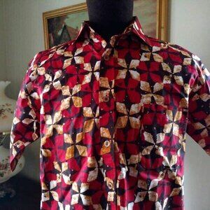 Mens Batik Shirt Button Front Ethnic African Polynesian Block Print 42" Chest