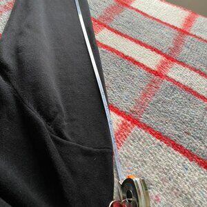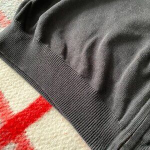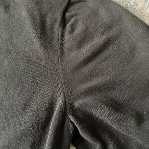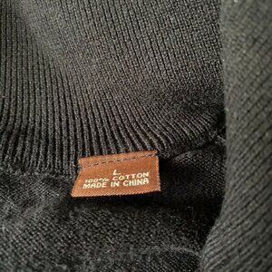 Zipper is smooth on this really classy looking men's cardigan with matching neck/cuff/waist hem. I loved my husband's look in this, but he is just too big for it. It is a darker black than the pictures show, but it's in excellent shape with no stains or tears whatsoever. It's a large, but fits more like a medium. Washes and drys very well.