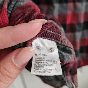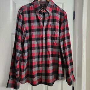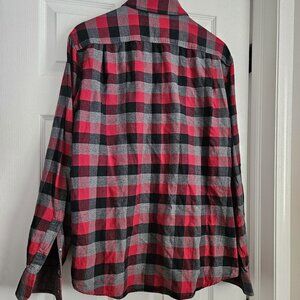 Men's Black Brown 1826 - Size L - Red, Grey &Black Plaid Flannel Button Up Shirt