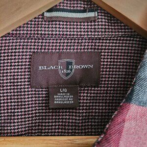 Black Brown 1826 100% Cotton Plaid Button Down Shirt Men L