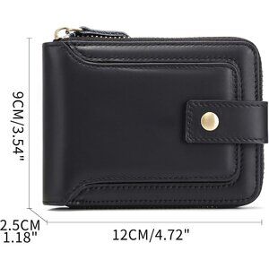 🆕Men's Black Genuine Leather Wallet RFID Blocking Zipper Coin Pocket ID Window